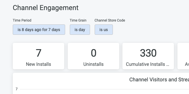 Roku channel installs report shows how many devices have the WAOH app installed